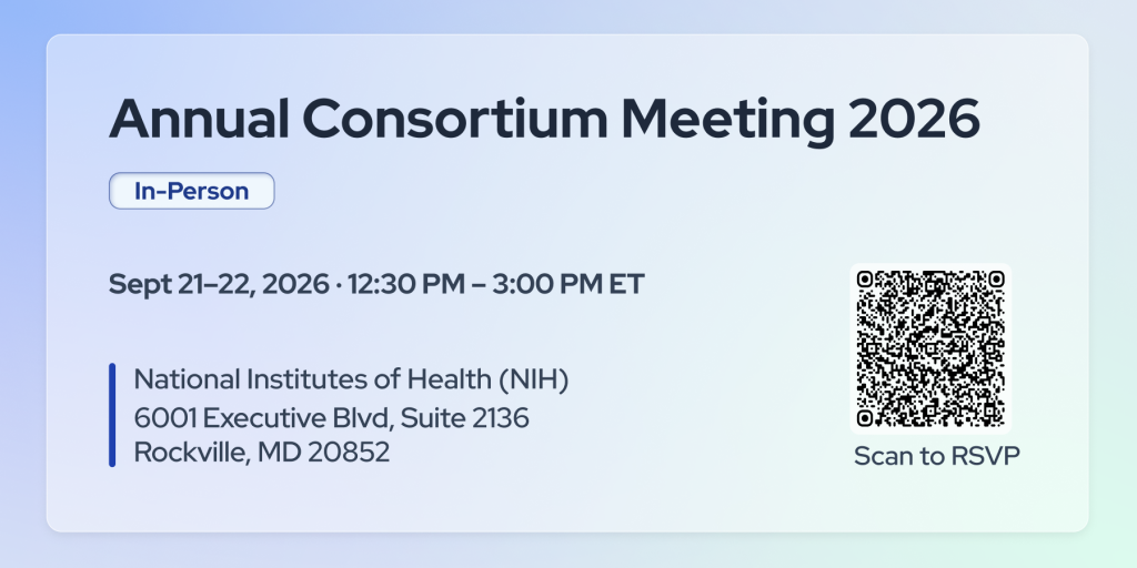 The 2026 Annual Consortium Meeting will be held at the National Institutes of Health (NIH), located at 6001 Executive Blvd, Rockville, MD 20852.